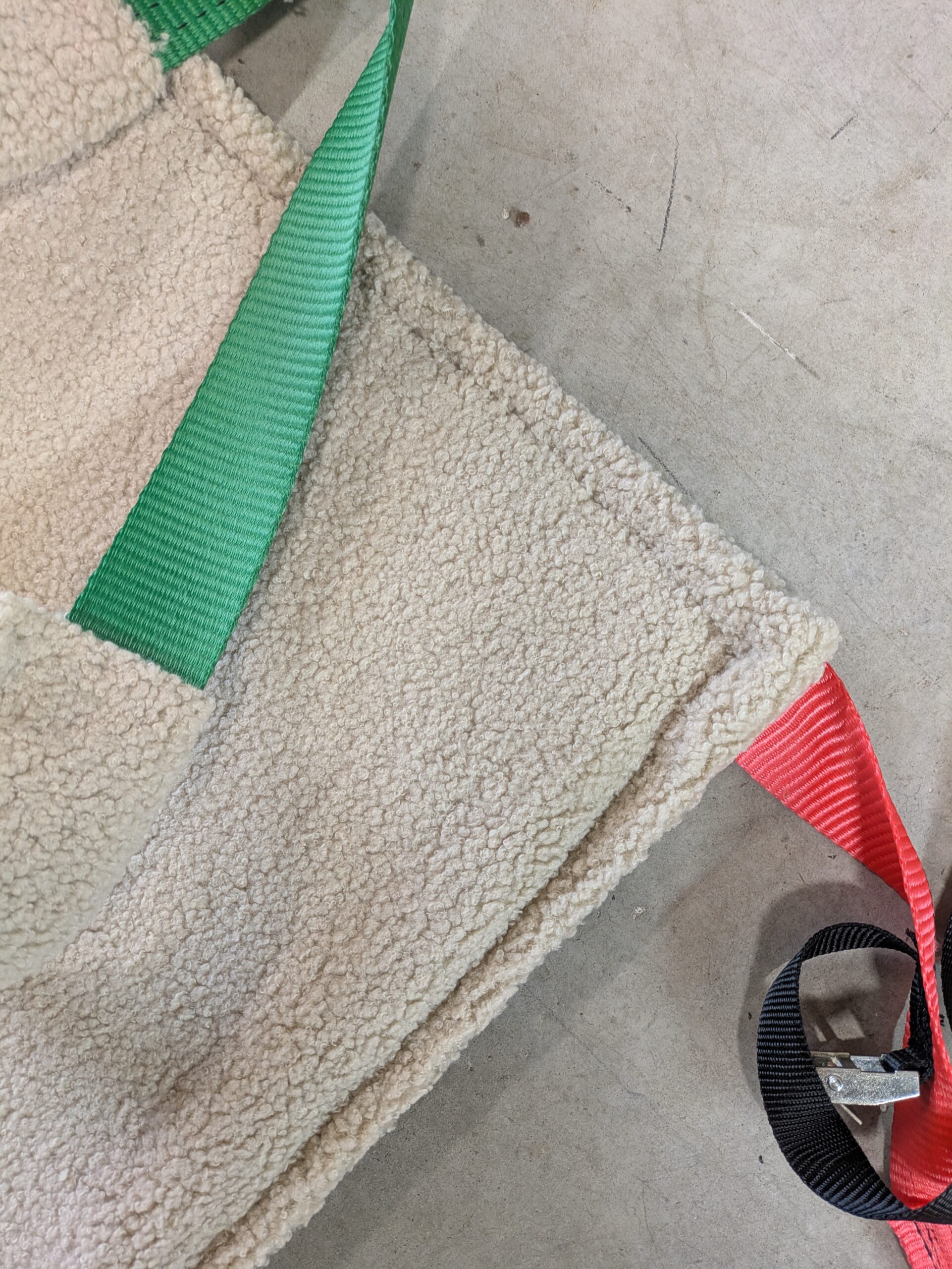 Ce harnais est fabriqué en toile PVC tressée 6 fois plus résistante qu’une bâche classique et renforcé par des sangles pour le transport et maintien des chevaux blessés, malades, âgés, accidentés ou en mauvaises postures. Pour le confort du grand poney, la toile du harnais est prolongée jusqu’au poitrail, les sangles à l’avant et à l’arrière sont recouvertes de tissu effet peau de mouton. Le nettoyage de la toile est possible avec un savon neutre et un séchage à l’air libre mais non face au soleil.